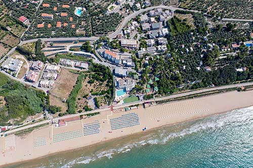 L'Hotel Baia Santa Barbara Rodi Garganico (Gargano), consists of two traditional hotels, room-villas and studio apartments, in all inclusive formula. Two-roomed villas, three-roomed apartments and apartments in residence formula, for a total of n. 245 unit.